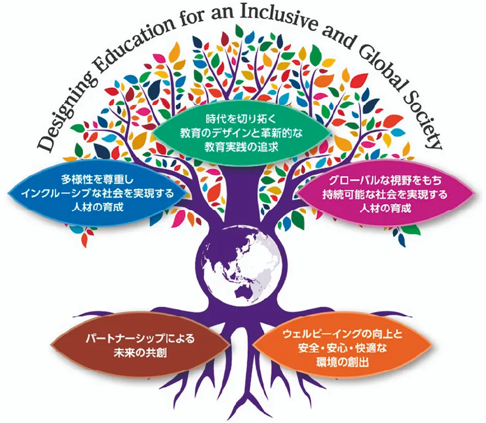 多様性を尊重しインクルーシブな社会を実現する人材の育成 インクルーシブな社会を実現するため、多様性(障害 の有無、文化的背景の差異、ジェンダー等)を尊重する意識を高め、自立性をはぐくむ教育を推進し、誰もが尊重さ れ、自己実現できる学びの場のモデルを提供する。