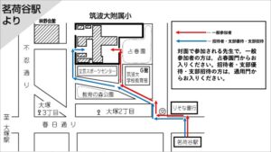 なお,今回,対面でご参加される方は,本校に来校する際,以下の画像にございますルートをご利用ください。よろしくお願い申し上げます。
