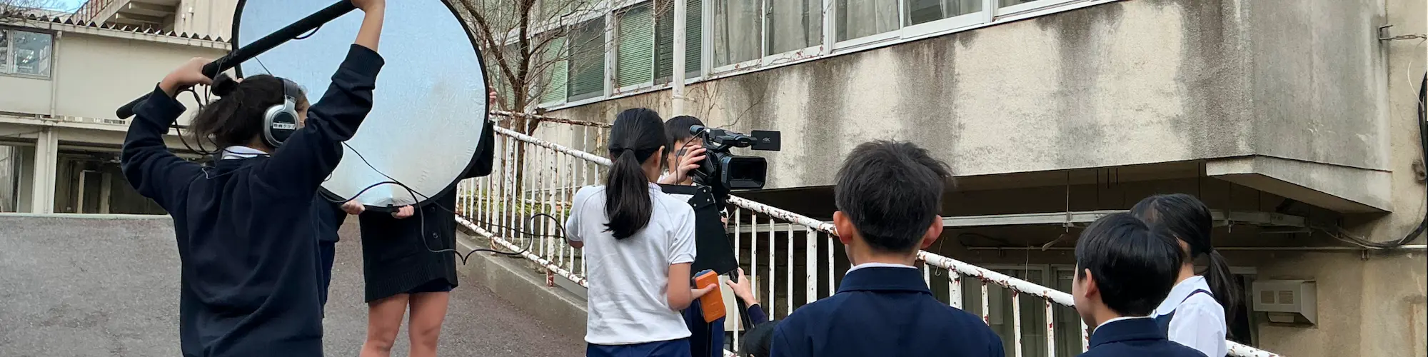 撮影する児童