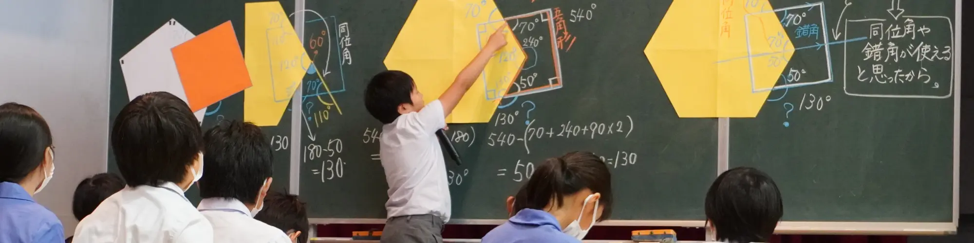 子どもたちが自他の違いを尊重し、異なる視点やアイディアをもとに「編む」という思考活動をすることで、これまでとは違う新たな価値を創出する「知性」を育みたいと考え、「違いを編む『知性』」というテーマを設定した。